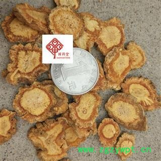 【药材性状】圆形或长圆形厚片外表面灰棕色 切面皮部浅棕色 木部浅黄色 有明显裂隙和细小油点 体轻质松 其特异味微苦