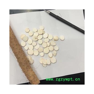 性状颜色: 呈圆形片 表面黄白色,断面黄白色 表面光滑 直径约0.8-1厘米左右