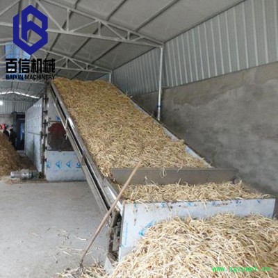 百信玉竹专用网带式烘干机主要由转换炉、网带式穿流干燥机、电控系统和其他辅助部件组成。转换炉提供热量;网带式穿流干燥机是干燥设备的主体,由机体和多层输送带组成;电控系统控制整个设备的启动、运转与停止。在其他辅助部件的配合下,干燥设备完成玉竹的上料、干燥与出料等工序,实现玉竹的干燥加工。