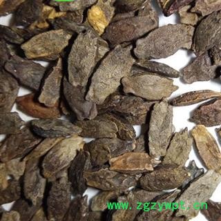 【性 状】本品略呈扁长方形,长1-1.5cm,宽4-7mm,厚2-3mm,表面棕褐色至黑褐色,具凸凹不平的雕纹呈类人字形、类圆形、不规则形沟纹及点状突起;一端有三角形突起