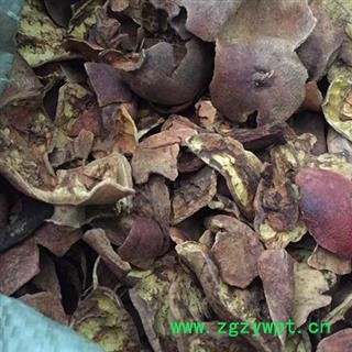 【颜色性状】:干燥的果皮呈不规则的片状或瓢状,外表红棕色,略有光泽,粗糙并有突起,内表面黄棕色,有网状的果蒂残痕,体轻质脆易碎
