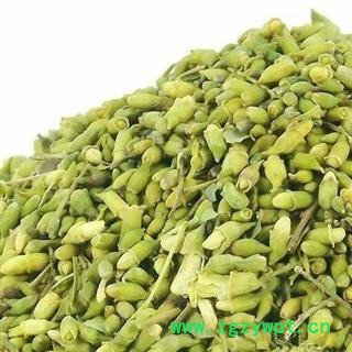 性状:花蕾卵形或椭圆形,花萼黄绿色,下部有数条纵纹。萼的上方为黄白色未开放的花瓣。花梗细小。体轻,手捻即碎。无臭,味微苦涩。带杆率5%-8%