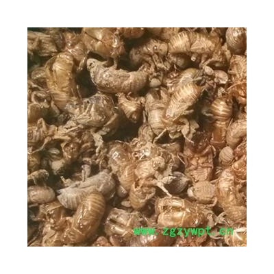1、整体外观描述: 全形似蝉,中空,稍弯曲,长约3.5cm,宽约2cm,黄棕色,半透明,有光泽。头部复眼突出,额突出,口吻发达。下唇伸长成管状。胸部背面呈十字形裂开,裂口向内卷曲。左右具小翅2对。腹部足3对,前1对足粗壮具齿,3对足均被黄棕色细毛。腹部钝圆,尾部钝尖,腹部至尾端共 9节。