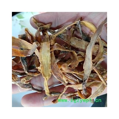 性状:条状薄片,边缘略卷具环节,背部棕黑色,或棕褐色,腹部浅黄色