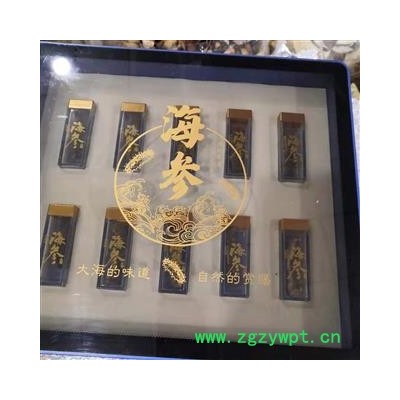 【颜色性状】:黑褐色长条状海参,外带礼盒加蓝色手提袋
