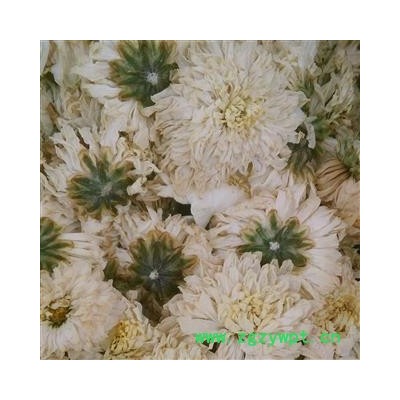 贡菊 呈扁球形或不规则球形,直径1.5~2.5cm。舌状花白色或类白色,斜升,上部反折,边缘稍内卷而皱缩,通常无腺点;管状花少,外露。