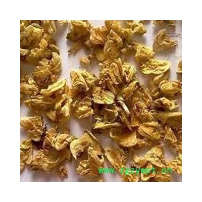 【性状颜色:花呈扁平不规则三角形,长、宽约1cm。下部有绿褐色钟状的花萼,萼齿5,其中2齿几合生,外被白色短柔毛。花瓣5,皱缩,黄白、黄棕或紫棕色,未开放的花外为旗瓣包围,开放后,广卵圆形的旗瓣则向外反折;两侧为翼瓣,斜椭圆形,基部有小耳;龙骨瓣镰钩状,几弯成直角。雄蕊10,其中9枚基部联合;内有一柱状雌蕊,弯曲。质软,体轻。气微香,味淡。以朵大、色黄白、气香者为佳。