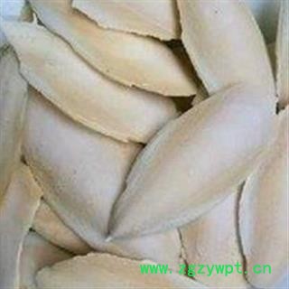 【性状颜色】:为长椭圆形而扁平,边缘薄中间厚,腹面百色,有水波样纹,背面瓷白色,而略带暗红色,体轻质脆易碎