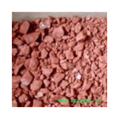 性状颜色:不规则的红色大小颗粒。触之有红棕色粉末沾手。大小颗粒粉