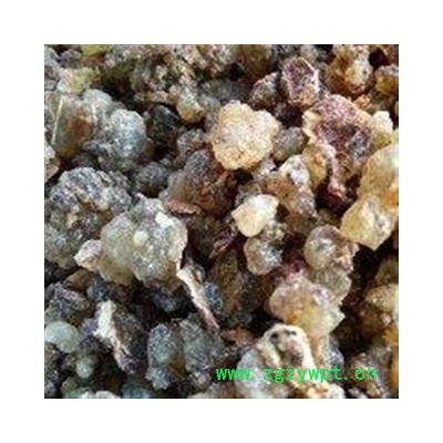 性状颜色:干燥胶树脂,多呈小形乳头状、泪滴状颗粒或不规则的小块,长0.5~3厘米,有时粘连成团块。淡黄色,常带轻微的绿色、蓝色或棕红色。半透明。表面有一层类白色粉尘,除去粉尘后,表面仍无光泽。质坚脆,断面蜡样,无光泽,亦有少数呈玻璃样光泽。气微芳香,味微苦。嚼之,初破碎成小块,迅即软化成胶块,粘附牙齿,唾液成为乳状,并微有香辣感。遇热则变软,烧之微有香气(但不应有松香气),冒黑烟,并遗留黑色残渣。与少量水共研,能形成白色乳状液。以淡黄色、颗粒状、半透明、无砂石树皮杂质、粉末粘手、气芳香者为佳。特质:无色或淡黄色,有树脂的香气 。