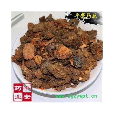 【性 状】呈不规则颗粒性团块,多夹杂树皮,大小不等.大者直径长达6cm以上。表面黄棕色或红棕色,近半透明部分呈棕黑色,被有黄色粉尘。质坚脆,破碎面不整齐,无光泽。有特异香气,味苦而微辛