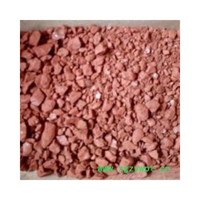 性状颜色:不规则的红色大小颗粒。触之有红棕色粉末沾手。大小颗粒粉