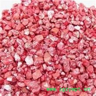 【性状】本品为粒状或块状集合体,呈颗粒状或块片状。鲜红色或暗红色,条痕红色至褐红色,具光泽。体重,质脆,片状者易破碎,粉末状者有闪烁的光泽。气微,味淡。
