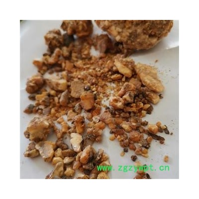 【药材性状】 不规则块状或颗粒、表面特征有树皮 易碎 金黄色 芳香