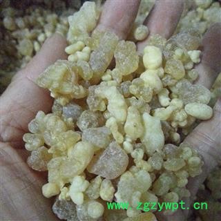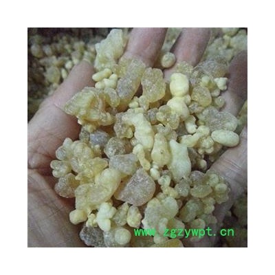 【性 状】长卵形滴乳状、类圆形颗粒或粘合成大小不等的不规则块状物。大者长达2cm(乳香珠)或5cm(原乳香)。表面黄白色,半透明,被有黄白色粉末,久存则颜色加深。质脆,遇热软化。破碎面有玻璃样或蜡样光泽。具特异香气,味微苦