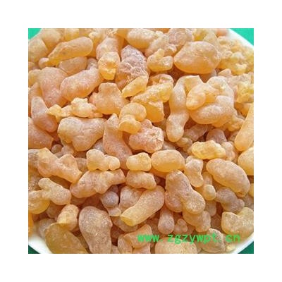 【性 状】本品呈长卵形滴乳状、类圆形颗粒或粘合成大小不等的不规则块状物。大者长达2cm(乳香珠)或5cm(原乳香)。表面黄白色,半透明,被有黄白色粉末,久存则颜色加深。质脆,遇热软化。破碎面有玻璃样或蜡样光泽。具特异香气,味微苦