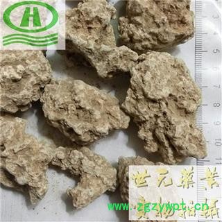 【性 状】不规则土块形状。色彩上呈现出土黄色或浅灰色;条痕浅黄色。不透明,土状光泽。表面浅凹凸不平,并具裂隙。体质重,质坚硬,可砸碎,断面呈颗粒状,色较深,并可见结核状类圆形迹痕或灰白色结晶层。具土腥气,味淡