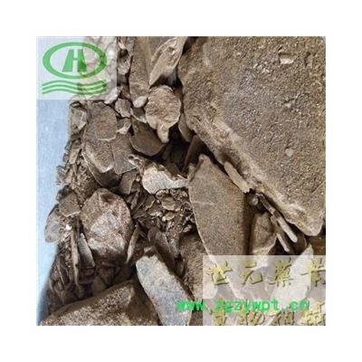 【性 状】不规则的片状,一般长2~6厘米,厚约5毫米。色金黄、或暗棕色至墨绿棕色。表面光滑,有网状纹理,具金属光泽。质柔软,可用指甲刻划并留浅色痕迹。断面呈层状,无光泽;易剥离成薄层,及易碎裂成粉末状。