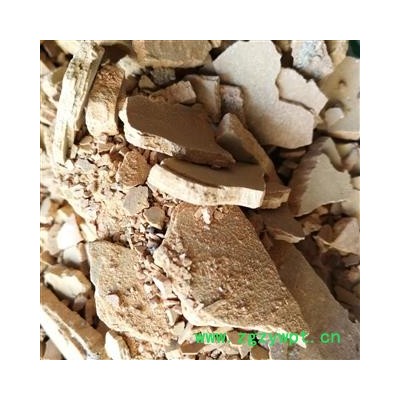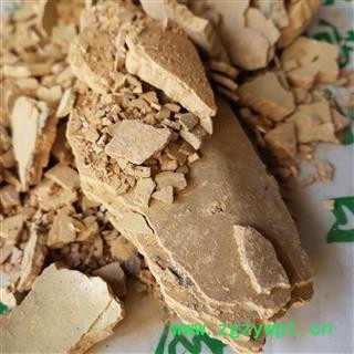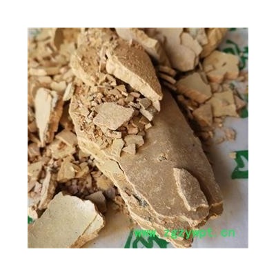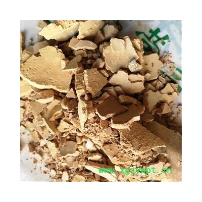 性 状:该品呈不规则的块状,大小不一。橙红色,镶嵌具金属光泽的小块,对光照之闪闪发光。表面粗糙,有时一面呈橙黄色而略平滑。质硬体重,易砸碎。断面红褐色,亦镶嵌具金属光泽的小块。气无。