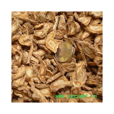 【药材性状】圆形或长圆形厚片外表面灰棕色 切面皮部浅棕色 木部浅黄色 有明显裂隙和细小油点 体轻质松 其特异味微苦