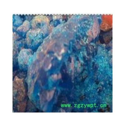 颜色性状:无臭,味涩,蓝色晶体深蓝或浅蓝色,半透明。似玻璃光泽。质脆,易碎, 碎块呈棱柱形,断面光亮。