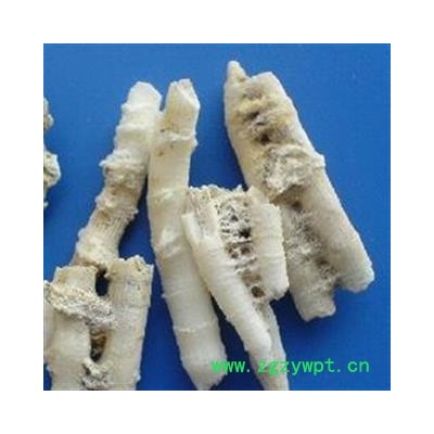 【外观描述】鹅管石为海产腔肠动物树珊瑚科的栎珊瑚,以石灰质骨骼入药,呈圆柱形或圆锥形,中空如和状,长3-7cm,直径0.5-1.3cm,管壁厚1-4cm。白色、淡黄白色。表面平滑,有的较粗糙,有颗粒或纵斜纹理。半透明至不透明。质硬脆,可折断,断面白色,具玻璃光泽,中心具较大空洞,壁厚者可见浅黄色环层。无臭,味淡。