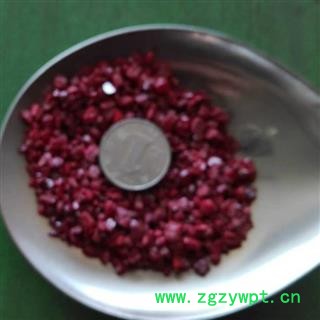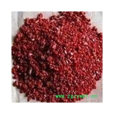 【性状】:为粒状或块状集合体 呈颗粒状或块片状。鲜红色或暗红色,条痕红色至褐红色,具光泽 有平行的纹理,断口呈半贝壳状或参差状。体重,质脆,片状者易破碎,粉末状者有闪烁的光泽,无味。金刚、半金属、暗淡光泽。