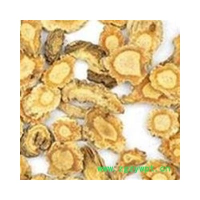【药材性状】圆形或长圆形厚片外表面灰棕色 切面皮部浅棕色 木部浅黄色 有明显裂隙和细小油点 体轻质松 其特异味微苦