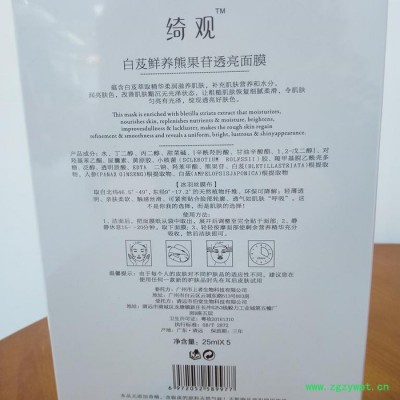 产品特色:绮观白芨鲜养面膜,采用白芨等植物有效成分。为现代女性熬夜或者皮肤状态不好所造成的皮肤问题进行修护,温和不刺激,能轻松深入肌肤**层,肌肤得到有效滋润,更新老化的角质与细胞,形成润泽的肌肤保护层,散发水润光彩。