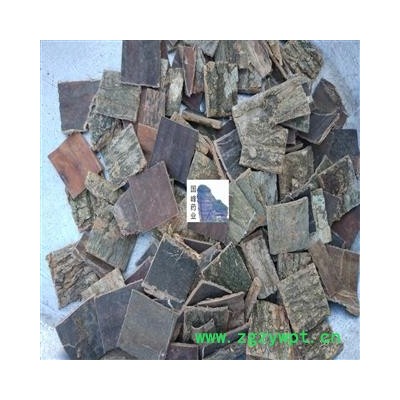 [性 状]:该品干燥树皮,为平坦的板片状或卷片状,大小厚薄不一般厚约3~10毫米。外表面灰棕色,粗糙,有不规则纵裂槽纹及斜方形横裂皮孔,有时可见淡灰色地衣斑。但商品多已削去部分糙皮,故外表面淡棕色,较平滑。内表面光滑,暗紫色。质脆易折断,断面有银白色丝状物相连,细密,略有伸缩性。气微,味稍苦,嚼之有胶状残余物。以皮厚而大,糙皮刮净,外面黄棕色,内面黑褐色而光,折断时白丝多者为佳。皮薄、断面丝少或皮厚带粗皮者质次。