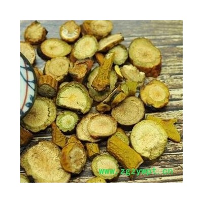 药材性状:本品茎枝呈圆柱形,2~5叉状分枝,长约30cm,直径0.3~lcm;表面黄绿色、金黄色或黄棕色,有纵皱纹;节膨大,节上有分枝或枝痕。体轻,质脆,易折断,断面不平坦,皮部黄色,木部色较浅,射线放射状,髓部常偏向一边。叶对生于枝梢,易脱落,无柄;叶片呈长椭圆状披针形,长2~7cm,宽0.5~1.5cm;先端钝圆,基部楔形,全缘;表面黄绿色,有细皱纹,主脉5出,中间3条明显。革质。浆果球形,皱缩。无臭,味微苦,嚼之有黏性。