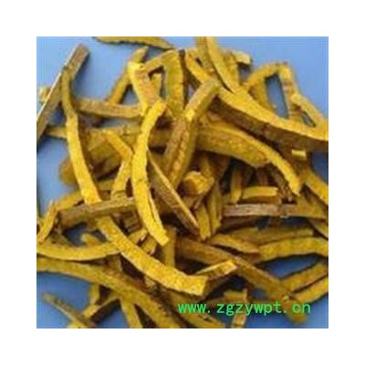性状颜色:本品呈丝状。外表面黄绿色或淡棕黄色,较平坦。内表面黄色或黄棕色。切面鲜黄色或黄绿色,有的呈片状分层。气微,味极苦。