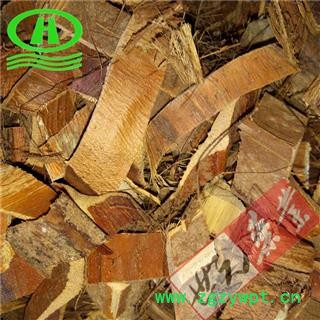 【性 状】呈长条板状,一端较窄而厚,另端较宽而稍薄,大小不等。表面红棕色,粗糙,有纵直皱纹;一面有明显的凸出纤维,纤维的两侧着生多数棕色茸毛。质硬而韧,不易折断,断面纤维性