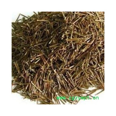 【药材性状】 干燥的松叶呈针状,长约12~18厘米,粗约0.1厘米,两叶并成一束 外包有长约0.5厘米的叶鞘,呈黑褐色。中央有长细沟,表面光滑,灰暗绿色