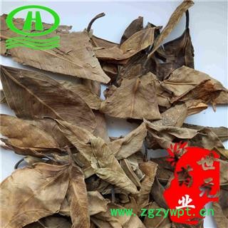 【性 状】叶不规则卷曲成筒状,褐色至黄褐色,展平后呈椭圆形或卵形,长3-8cm,宽2-4cm,先端钝或短尖,基部稍狭,全缘,下面网脉明显;叶柄长7-12mm。革质,体轻,稍有韧性