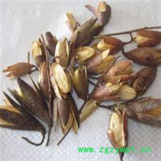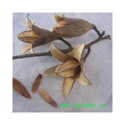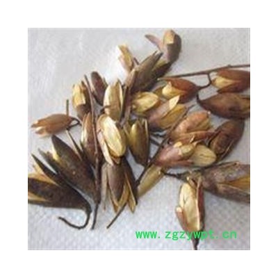 [性 状]:该品干燥果实,长2.5~3.5厘米。果皮开裂为5瓣,深裂至全长2/3左右,裂片披针形,先端尖,外表黑褐色,有细纹理,内表黄棕色,光滑,厚约2.5毫米,质脆。果轴呈圆锥形,顶端钝尖,黄棕色,有5条棕褐色棱线。断面内心松泡色黄白。种子着生于果轴及果瓣之间,5列,种子有极薄的种翅,黄白色,半透明,基部斜口状,种仁细小不明显。气微弱。以完整、干燥者为佳。