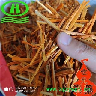 【性 状】棒状,表面黄红色至棕红色,具刀削痕,常见纵向裂缝。质坚硬。断面略具光泽,年轮明显,有的可见暗棕色、质松、带亮星的髓部