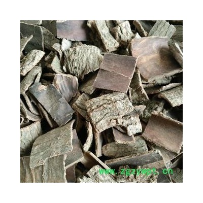 [性 状]:该品干燥树皮,为平坦的板片状或卷片状,大小厚薄不一,一般厚约3~10毫米,长约40~100厘米。外表面灰棕色,粗糙,有不规则纵裂槽纹及斜方形横裂皮孔,有时可见淡灰色地衣斑。但商品多已削去部分糙皮,故外表面淡棕色,较平滑。内表面光滑,暗紫色。质脆易折断,断面有银白色丝状物相连,细密,略有伸缩性。气微,味稍苦,嚼之有胶状残余物。以皮厚而大,糙皮刮净,外面黄棕色,内面黑褐色而光,折断时白丝多者为佳。皮薄、断面丝少或皮厚带粗皮者质次。