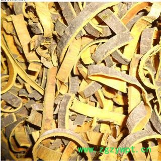 性状颜色:本品呈丝状。外表面黄绿色或淡棕黄色,较平坦。内表面黄色或黄棕色。切面鲜黄色或黄绿色,有的呈片状分层。气微,味极苦。