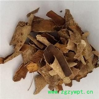 【性 状】根皮呈卷筒状或略卷曲的板片状,长短不一,外表面发黄色或灰褐色,粗糙,常有横皱纹或略横向突起;内表面淡褐色或棕褐色,有浅纵向条纹。质硬而脆,断面略平坦,稍呈颗粒性,黄白色或淡黄褐色。气微,味苦、微涩。树皮较薄,边缘略向内卷,外表面有较多椭圆状突起的皮孔