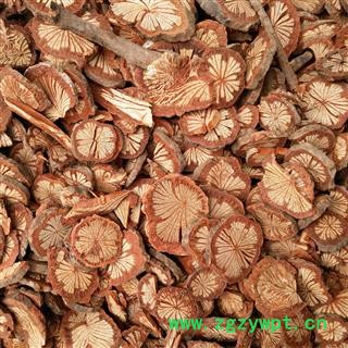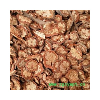 痕。质硬,断面皮部红棕色,有数处向内嵌入木部,木部黄白色,有多数细孔状导管,