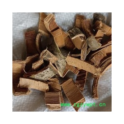 【颜色性状】:长条状块片,外表面灰棕色,具龟裂状沟纹及红棕色圆形或横长的皮孔。质坚硬,断面纤维性较强。