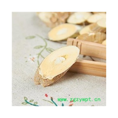 性状颜色:本品呈类圆形或椭圆形的厚片。外表皮灰黄色或黄褐色,有点状皮孔。切面皮部较薄,木部黄白色,射线放射状,髓部白色或黄白色。气微,味淡。