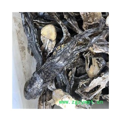 2、表面特征:全体拘挛抽皱,纵面有棱角,四足伸缩不一,表面灰绿色或绿棕色。除去内脏的,腹腔内面为灰黄色,可见到骨胳及皮膜。个大、身干、比较完整。