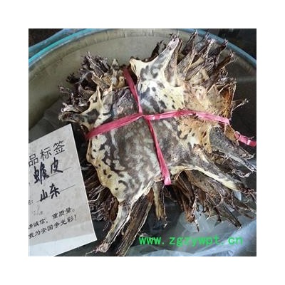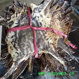 【性 状】黄灰色,皮革质地,表面小疙瘩状乳突,方块形边长4-6cm