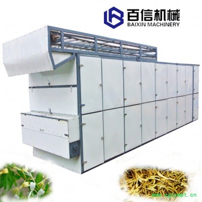 百信多层连续式紫草烘干机脱水干燥迅速, 操作方便,效率运行。能满足大批量连续生产的需求,网带式干燥设备广泛应用于食品(如面条、面皮)、干果(大枣、巴旦木、腰果、开心果)、花茶(玫瑰花、红薯、紫草、山楂花)、农副产品(如玉米、红薯烘干袪潮)、脱水蔬菜(如大蒜、红薯、红薯、辣根、洋葱、白菜干、生姜、小香葱、辣根、菠菜)、瓜果(如红薯、薯片、红薯、葡萄干、哈密瓜)、中草药、(连翘、黄蜀葵、枸杞、)水产品、土特产品、饲料及化工原料等加工之片状、条状、块状和颗粒状物料的脱水干燥作业。