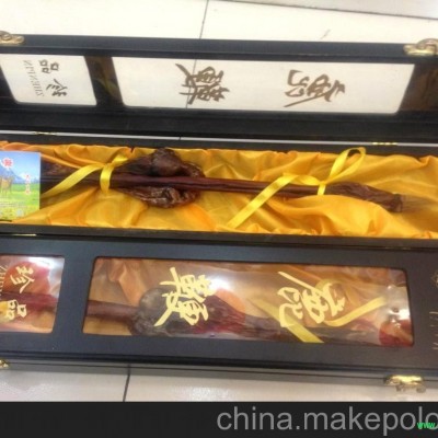 鹿鞭,中药名。又名鹿肾,鹿冲。为鹿科动物梅花鹿或马鹿雄性的外生殖器。宰鹿后,割取阴茎及睾丸,除净残肉及油脂,固定于木板上风干即成。以粗大、油润、无残肉及油脂、无虫蛀、干燥者为佳。《四川中药志》:性温,味咸辛,无毒;入肝、肾、膀胱三经;治阳痿,肾虚耳呜,妇人子宫寒冷,久不受孕,慢性睾丸发炎。但素体阳盛者慎服。鹿鞭使用方便,可泡酒,制作药膳,或煮食,或熬膏,或入丸、散。