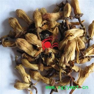 形状:花蕾略呈长卵圆形,先端稍膨大,长1-1.5cm,直径6-8mm,有梗。花萼灰绿色,皱缩不平,基部联合,裂片5片,有凹陷的小油点;花瓣5片,覆瓦状抱合,黄白色或浅黄棕色,表面有棕色油点和纵纹;雄蕊多数,黄色,花丝基部联合成数束;雌蕊棒状,子房倒卵形,暗绿色。体轻,质脆易碎。气香,味微苦。以色黄白、香气浓郁、无破碎者为佳。