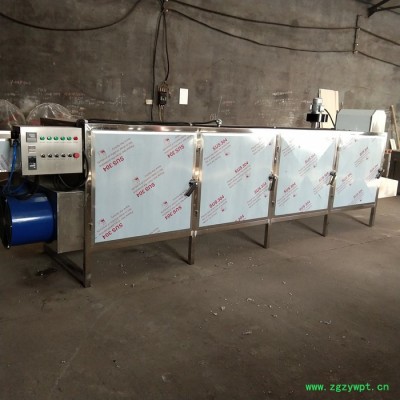 多层烘干机是一种批量,连续式生产的干燥设备,主要加热方式有电加热,蒸汽加热,热风炉加热,燃气加热。其主要原理是将物料均匀的平铺在网带上,网带采用12-60目的钢丝网带,由传动装置拖动在干燥机内往返移动,热风在物料间穿流而过,水蒸气从排湿孔中排出,从而达到干燥的目的,箱体长度由标准段组合而成,为了节约场地,可将烘干机制成多层式,常见的有二室三层、二室五层、四室五层、四室七层等,长度6-40m可定制,宽度0.6-3.0m。同时产品在输送过程中翻动多次达到烘干均匀的目的。
