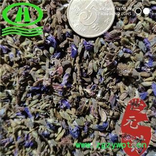 【性 状】呈不规则的扁长0.6-1mm。萼片灰绿色,基部连合,表面密被黄白色毛茸。蓝紫色,外部颜色较浅,呈淡紫色